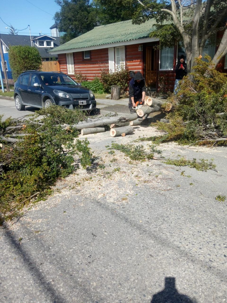 La Municipalidad de Ushuaia, a través de la Secretaría de Medio Ambiente y Desarrollo Sustentable, intervino durante la mañana de este domingo en distintas situaciones ocasionadas por la caída de árboles, producto del fuerte temporal de vientos registrado en la madrugada y las primeras horas del día.